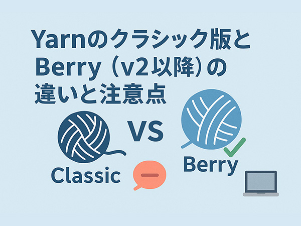 JavaScriptパッケージマネージャ「Yarn」には、大きく分けて「クラシック版(v1)」と「Berry(v2以降)」があります。特にYarn v1からv2以降に移行する場合は、多くの仕様変更があり、注意が必要です。本記事では、両者の主な違いや導入時の注意点を解説します。