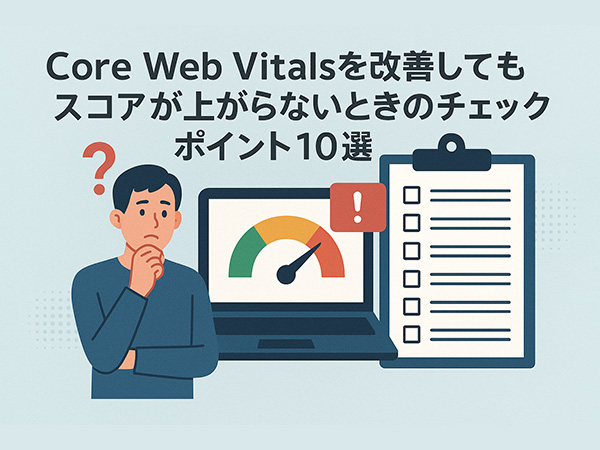 Core Web Vitals(LCP, CLS, INPなど)を改善したはずなのに、LighthouseスコアやPageSpeed Insightsの評価が思ったように上がらない…。そんなときに確認すべき10のチェックポイントを紹介します。スコアが上がらない理由は、必ずしも「数値が悪いから」ではない場合も。複数の要因を冷静に見極めて、総合的に対応していきましょう。