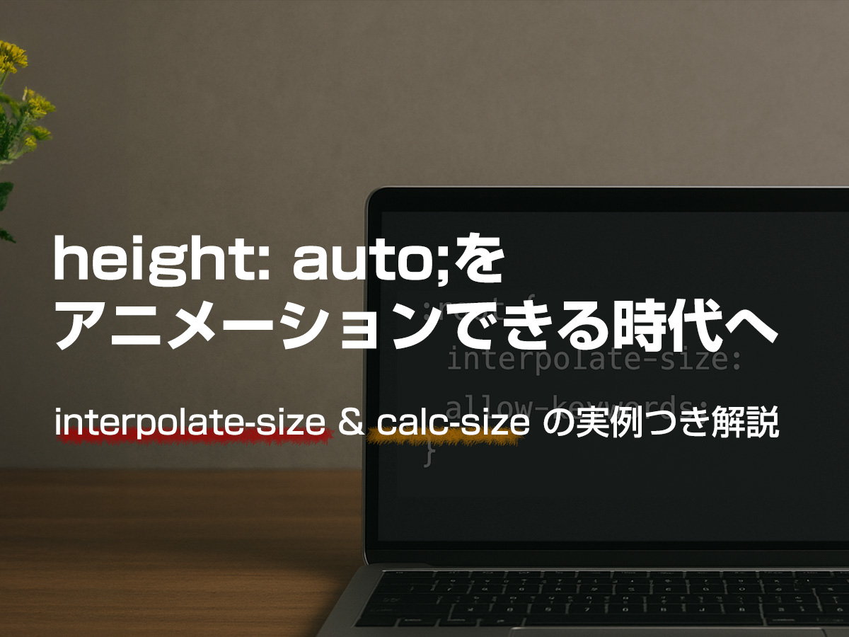 これからの CSS は「できないことを避ける」フェーズから、「できるように進化する」フェーズへと突入しています。interpolate-size と calc-size() は、その象徴的な存在です。今のうちから実験的に取り入れて、次世代の UI 実装に備えておきましょう。CSSのみでUI動作を完結する時代に向けて大きな一歩となりそうです。